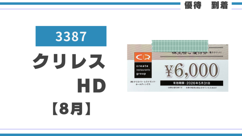 2月優待 クリエイト・レストランツHD(3387)から8,000円分の株主優待券が到着しました!