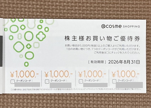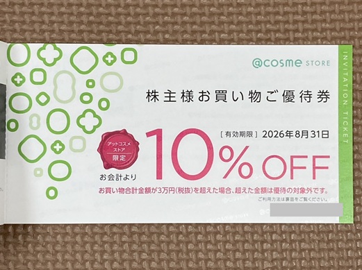 @Cosmeで利用できる株主優待!アイスタイル(3660)からお得な買い物割引券が到着しました!