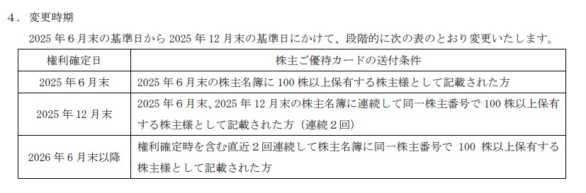 なお2025年3月に到着した優待券は使い切り型のカードですが、冊子型の優待券との併用もできます。