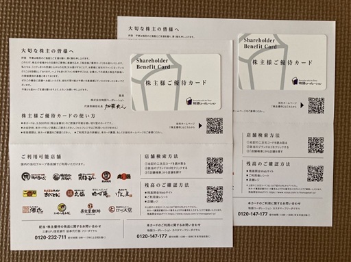 6月・12月優待の物語コーポレーション(3097)から株主優待が到着してました!