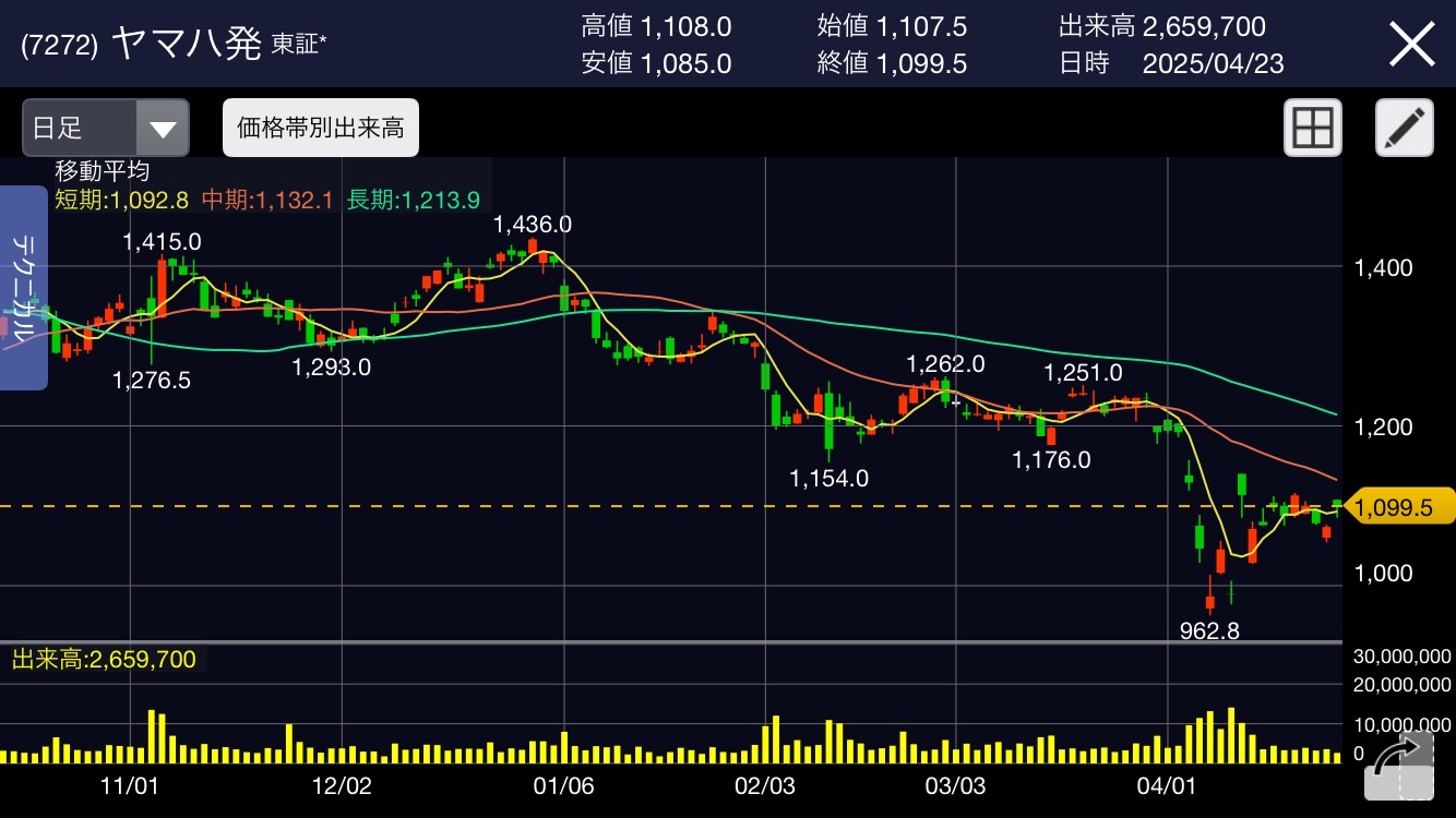 ヤマハ発動機(7272)は、クロス取引で取得しました。