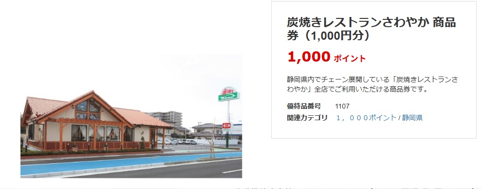 1,000ポイントの商品は多数あり、悩んだ結果さわやかの商品券にしました。